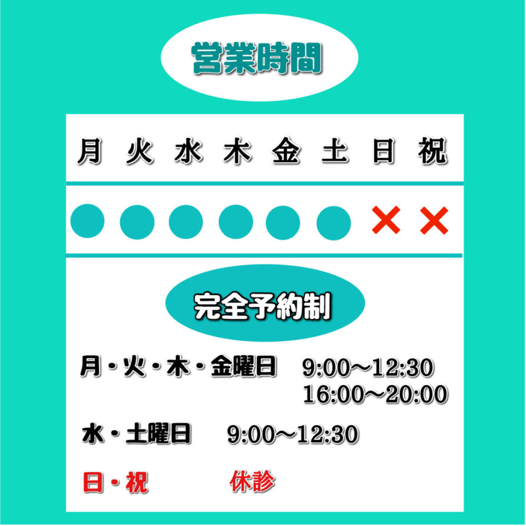 平日20時・土曜日も営業しておりますので、