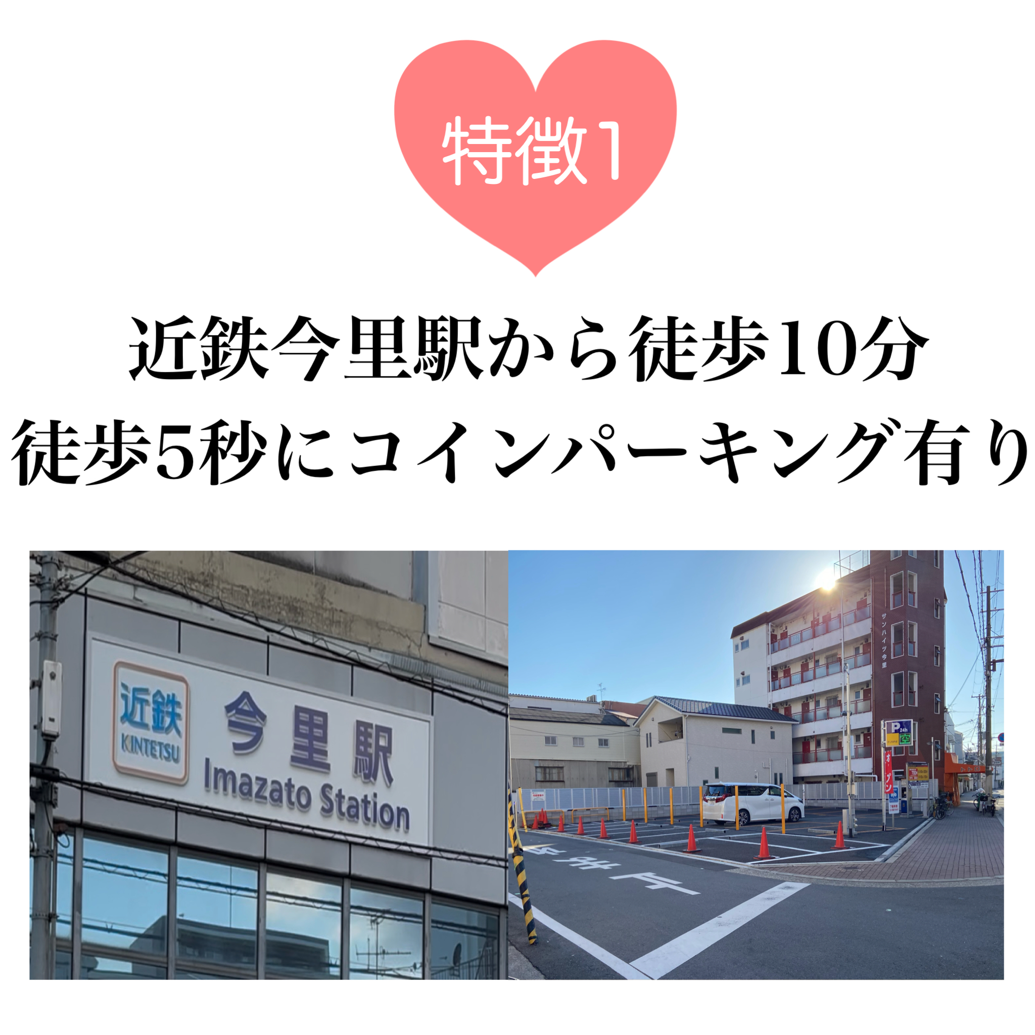 徒歩5秒のところにはコインパーキングがあり駐車場が