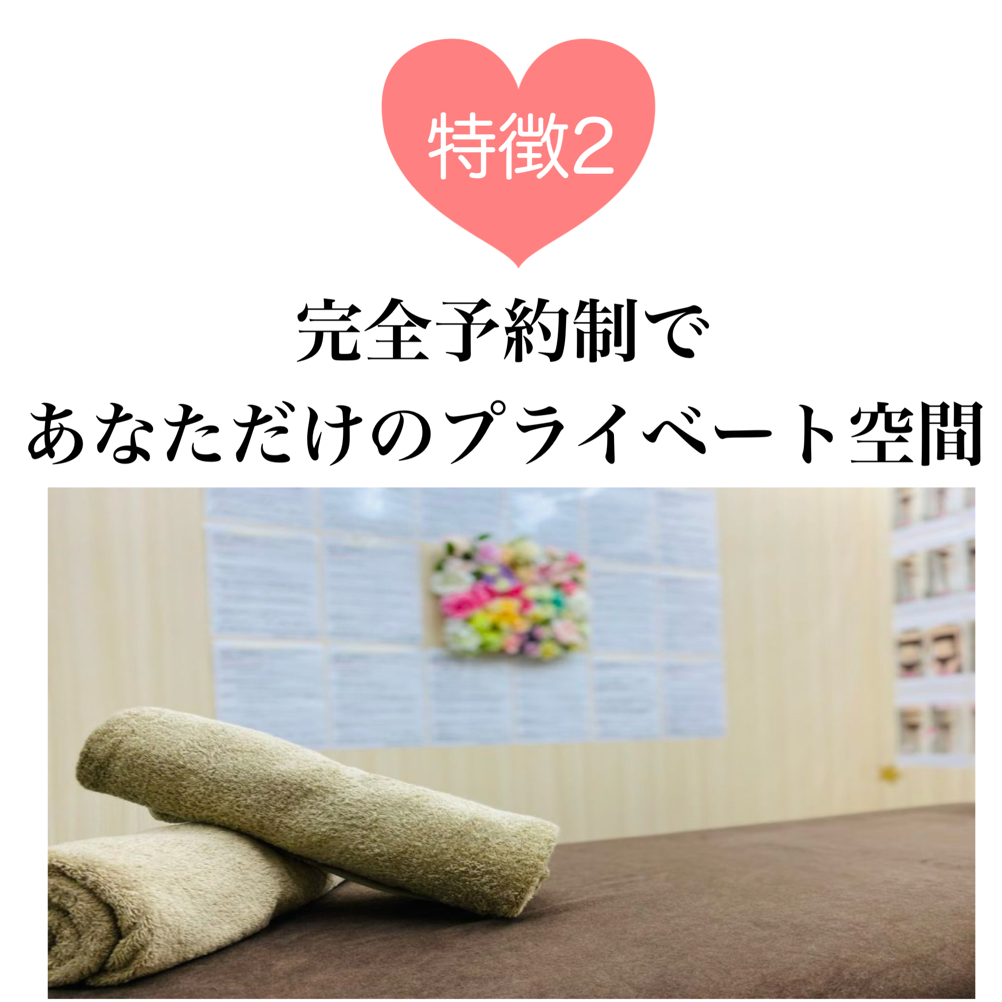 完全予約制で施術の間はもちろんあなただけ!